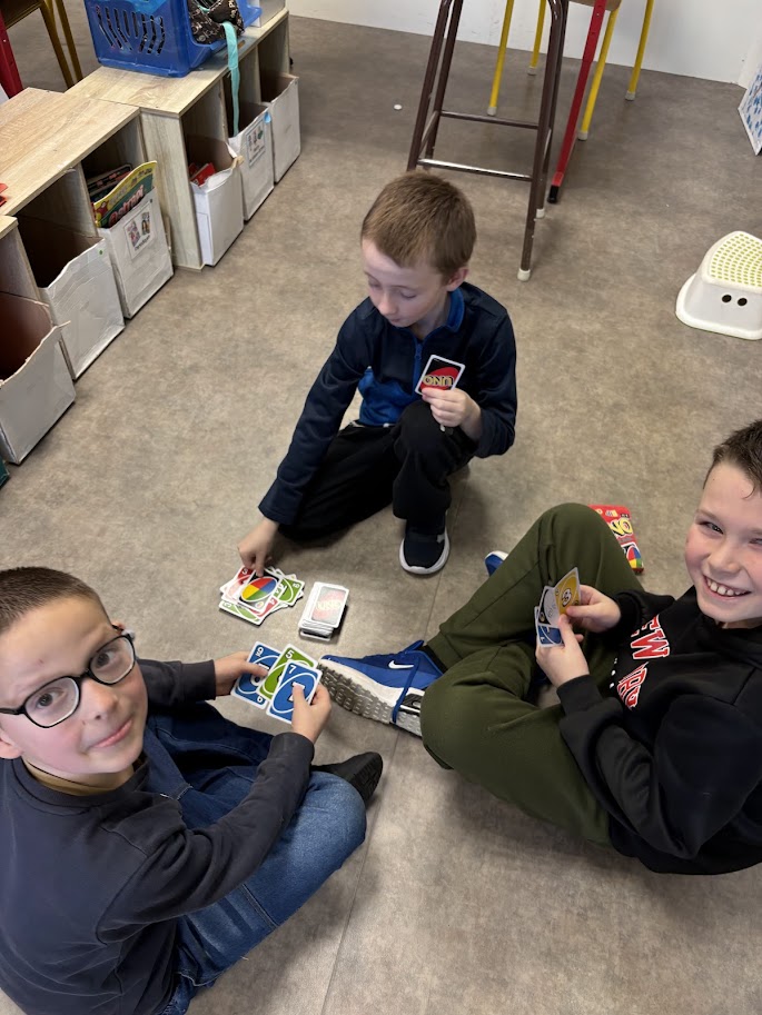 Avant chaque période de vacances, les élèves de CE1-CE2 jouent aux jeux de société l’après-midi.