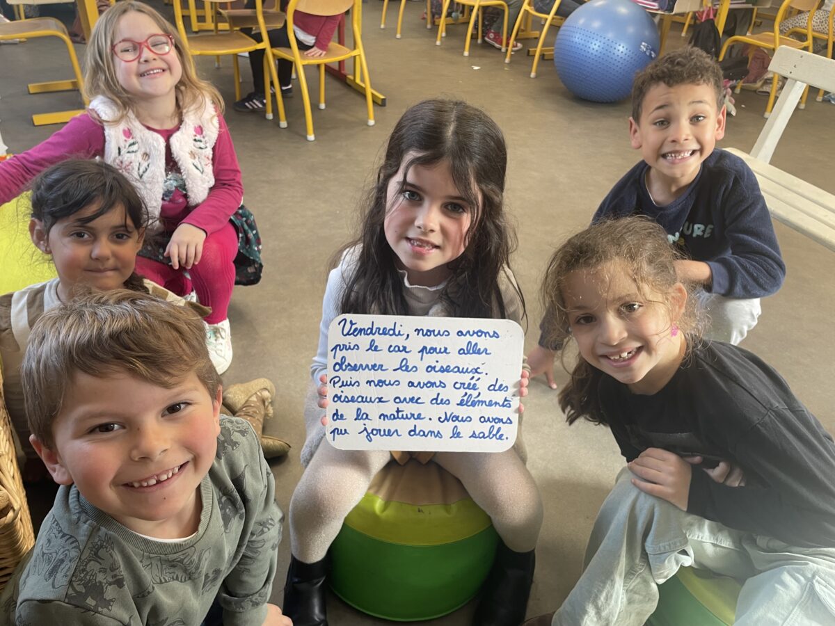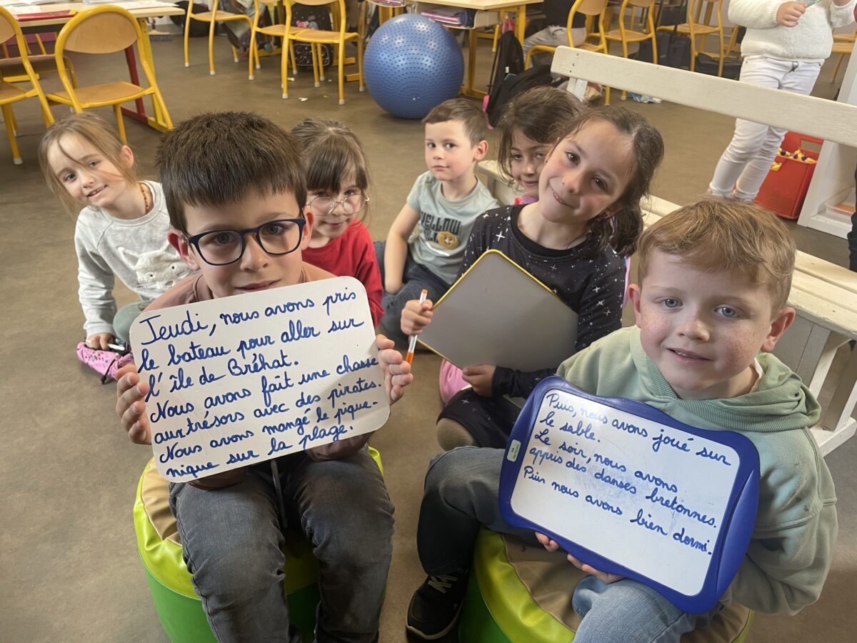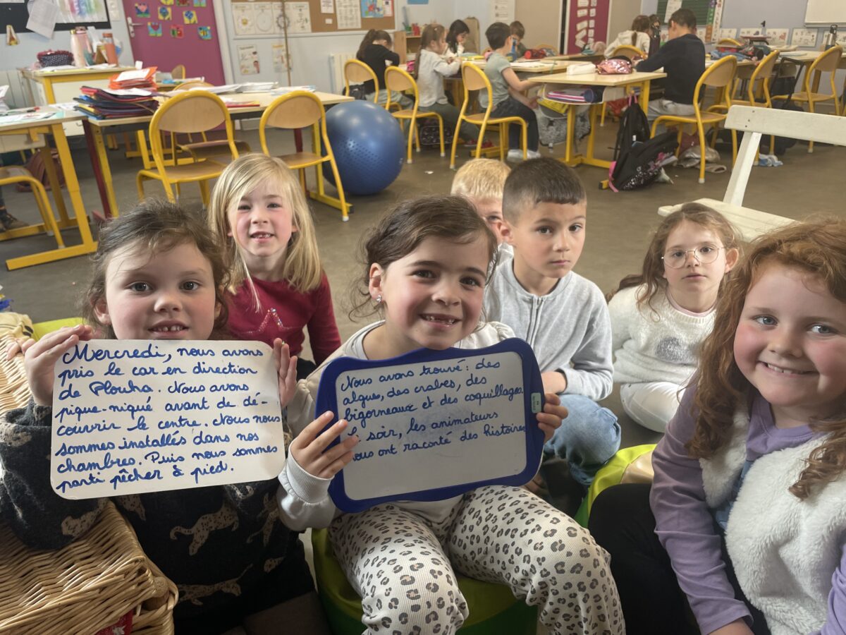 Le retour de la classe découverte est un excellent exercice de production d’écrits sous forme de dictée à l’adulte. C’est aussi une bonne façon de raconter le voyage à leur maitresse absente.